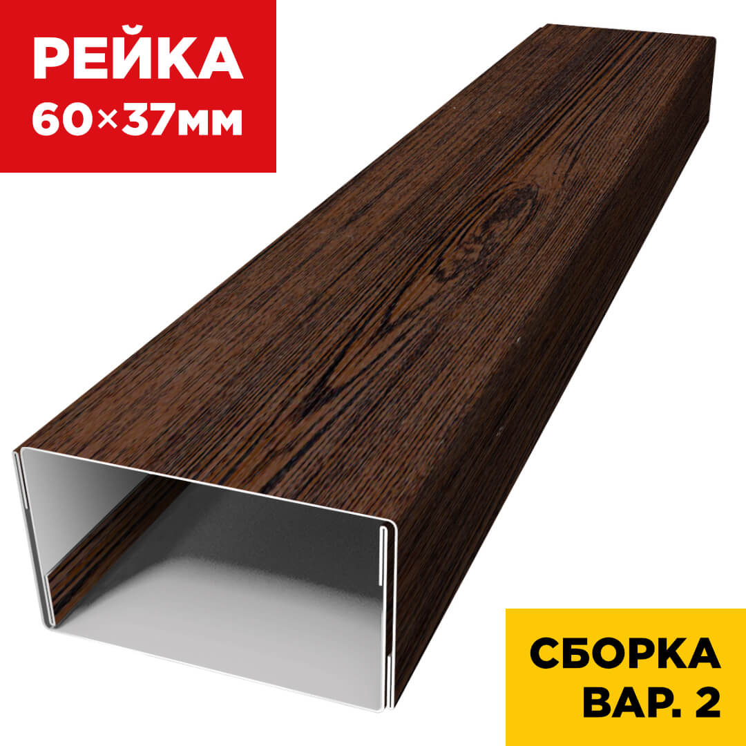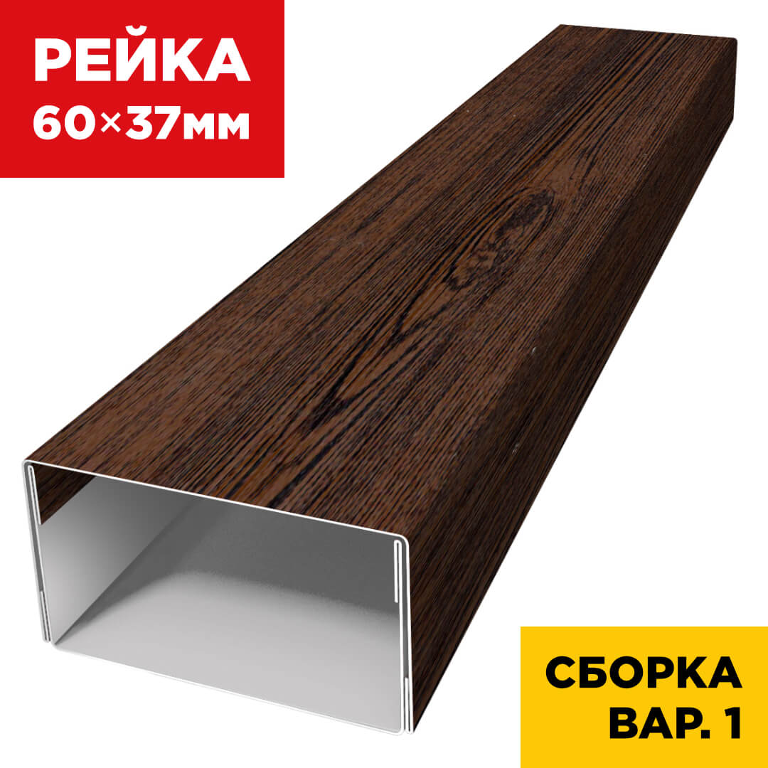 Декоративная рейка универсальная металлическая шириной 60 мм, высотой 37 мм, цвет под дерево Темный Каштан 3D Принтек Россия — это идеальное сочетание эстетики и функциональности.