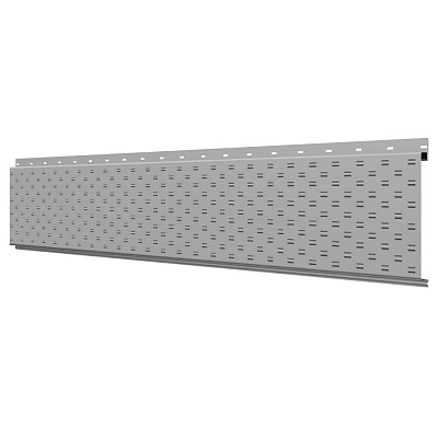 Линеарная потолочно-стеновая панель с ПЕРФОРАЦИЕЙ для вентиляции цвет RAL7004 Серый применяется в качестве софитов для подшивы крыши, наружной и внутренней отделки потолков, стен, фронтонов фасада дома в Красноярске.