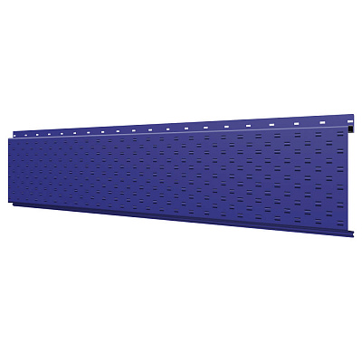Линеарная потолочно-стеновая панель с ПЕРФОРАЦИЕЙ для вентиляции цвет RAL5002 Синий Ультрамарин применяется в качестве софитов для подшивы крыши, наружной и внутренней отделки потолков, стен, фронтонов фасада дома в Красноярске.