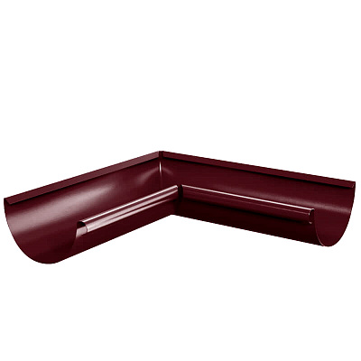 Угол желоба водостока внутренний 90 градусов d125мм RAL P363 Вишня металлический - используется для надежного сопряжения двух желобов между собой на внутренних углах 90 градусов карниза кровли. Угол желоба изготовлен без сварных сопряжений, методом прессования (глубокая вытяжка), что придает ему дополнительную коррозийную и механическую стойкость.