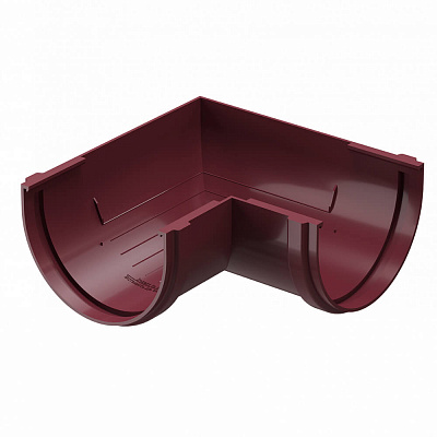 Угловой элемент желоба универсальный ДЕКЕ STANDARD d120мм 90 градусов цвет RAL 3005 Красный в Красноярске. Угловые элементы устанавливаются как на внешних, так и на внутренних углах кровли и предназначены для соединения желобов.