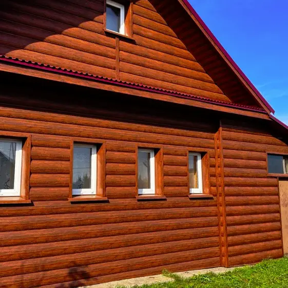 Фасад из металлосайдинга Бревно Рубленое 4D Темный Дуб Принтек в Красноярске