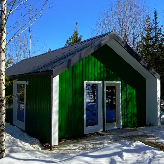 Сайдинг металлический ЕВРО-БРУС под брус RAL6002 Зеленый лист фото Центр Металлокровли Фото сайдинга металлического (металлосайдинга) Евро-Брус под брус RAL6002 Зеленый лист для фасада дома
